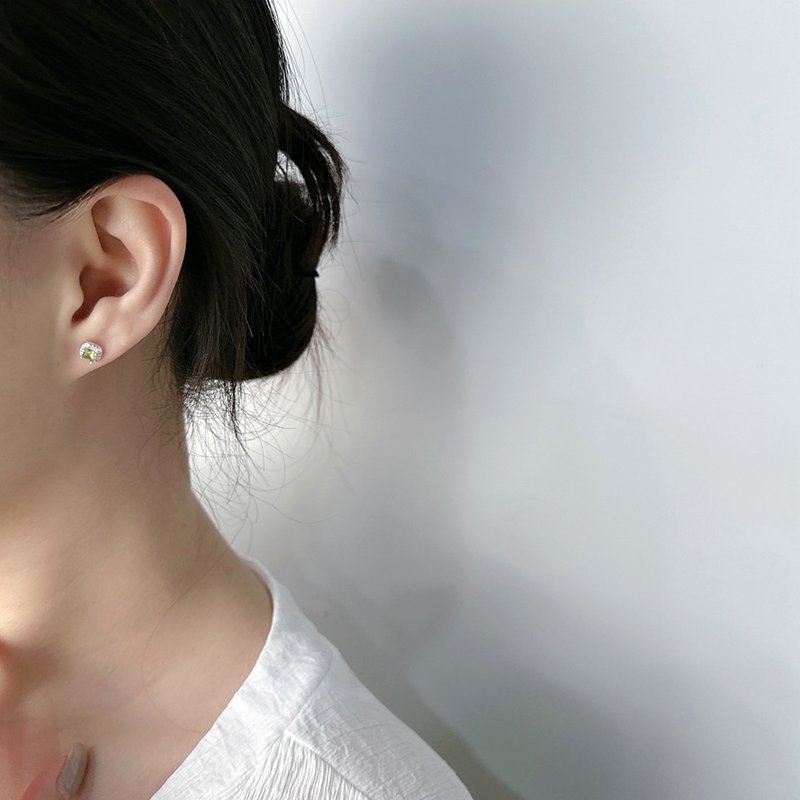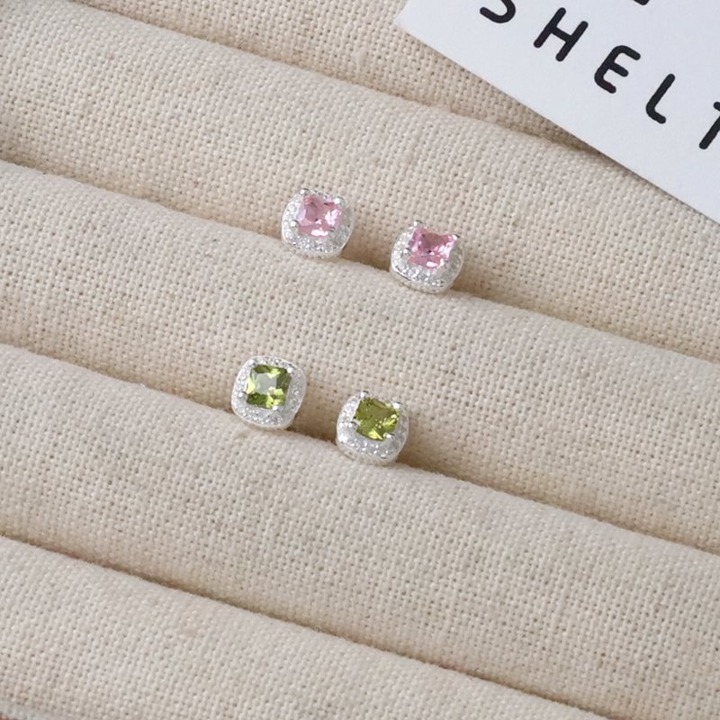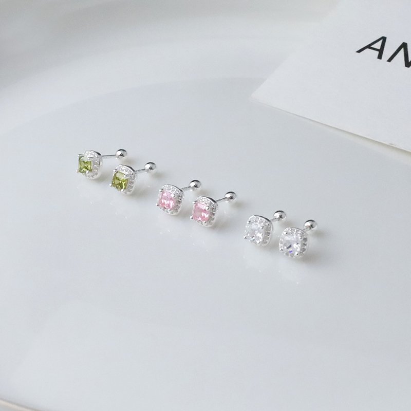 ES568 方形滾邊鑲鑽鋯石鎖針耳貼(白/綠/粉)