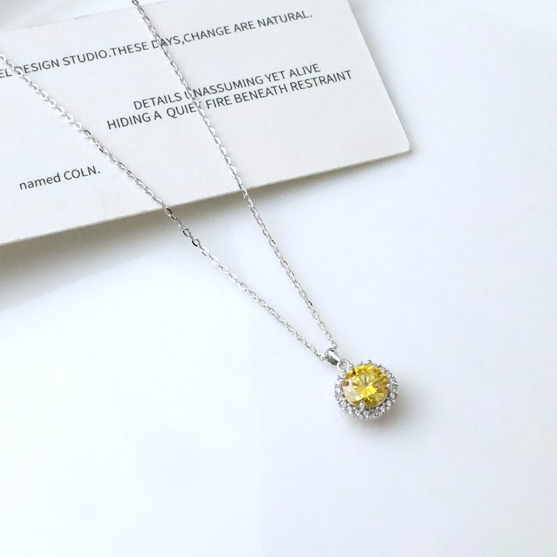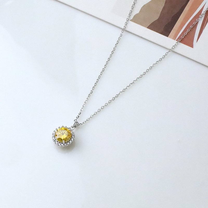 N522-E 鑲鑽圓邊黃莫桑石造型套鍊