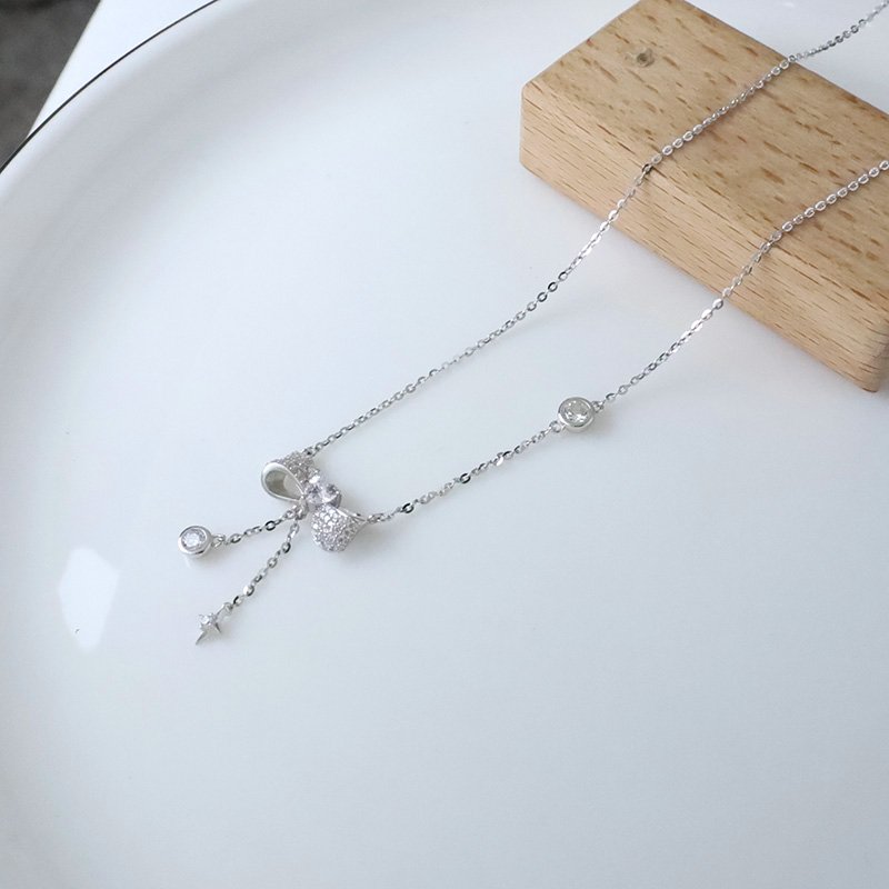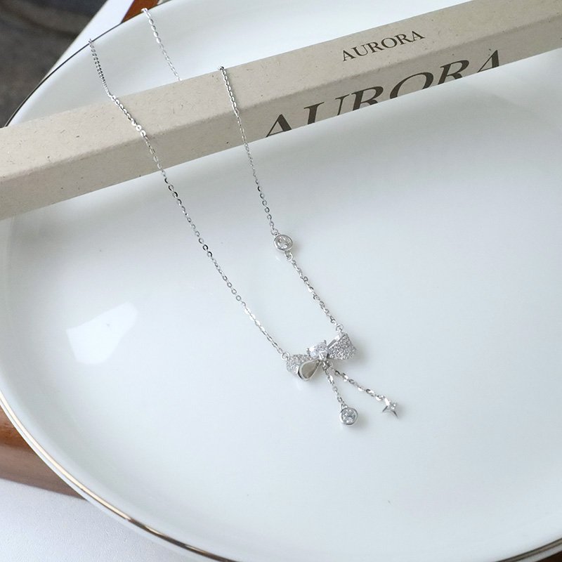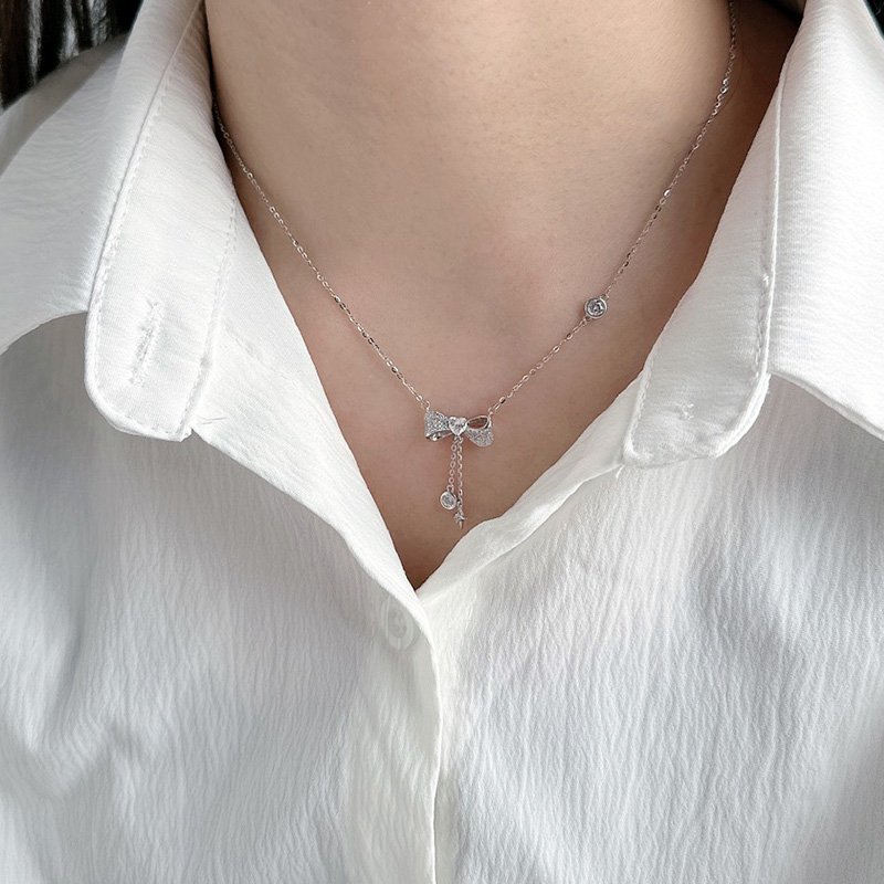 N521 鑲鑽愛心蝴蝶結垂吊小鑽造型套鍊