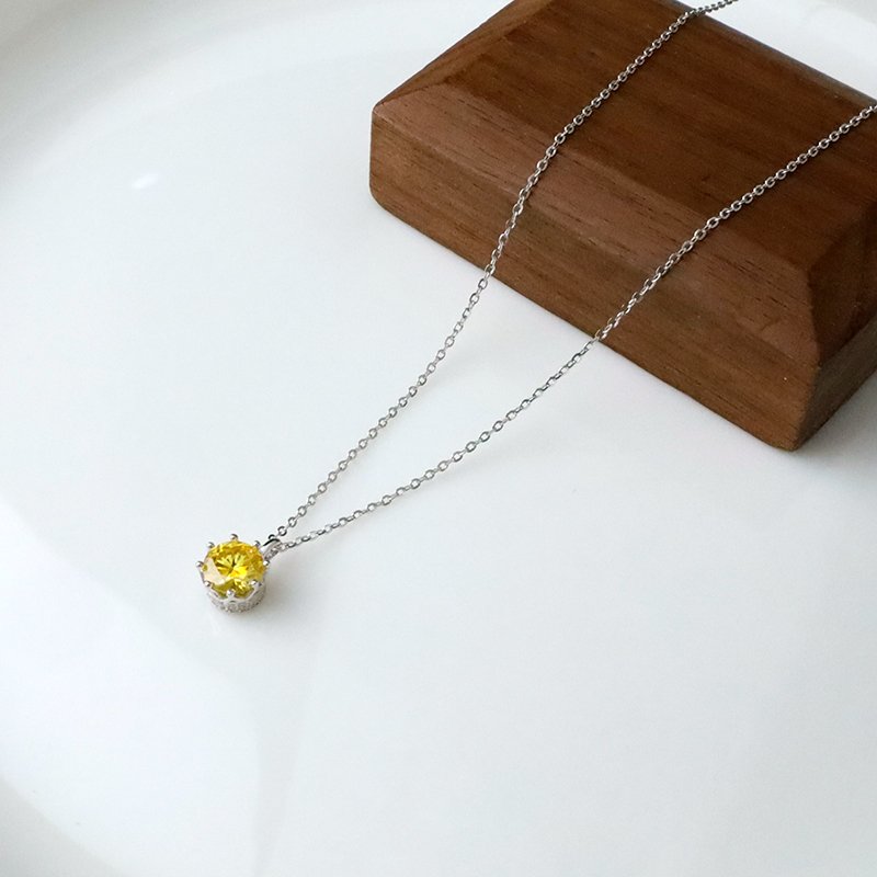 N522 滾邊皇冠鑲鑽黃莫桑石造型套鍊