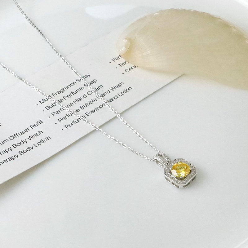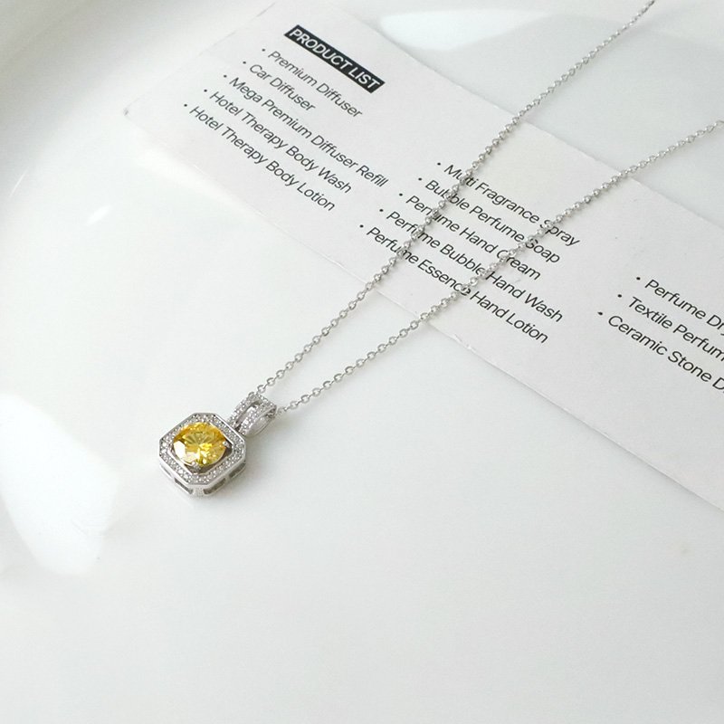 N523-D 兩線鏤空方型黃莫桑石造型套鍊