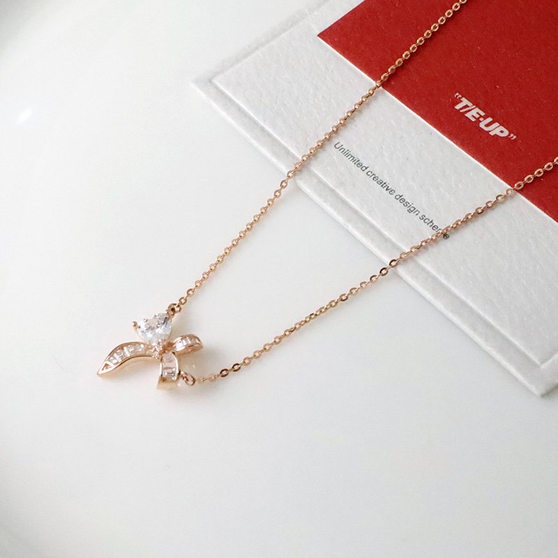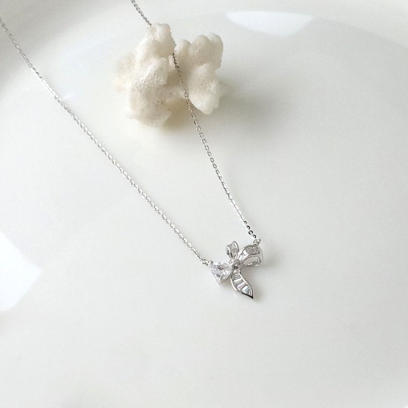 N521-B T鑽愛心蝴蝶結造型套鍊(銀白K/玫瑰金)